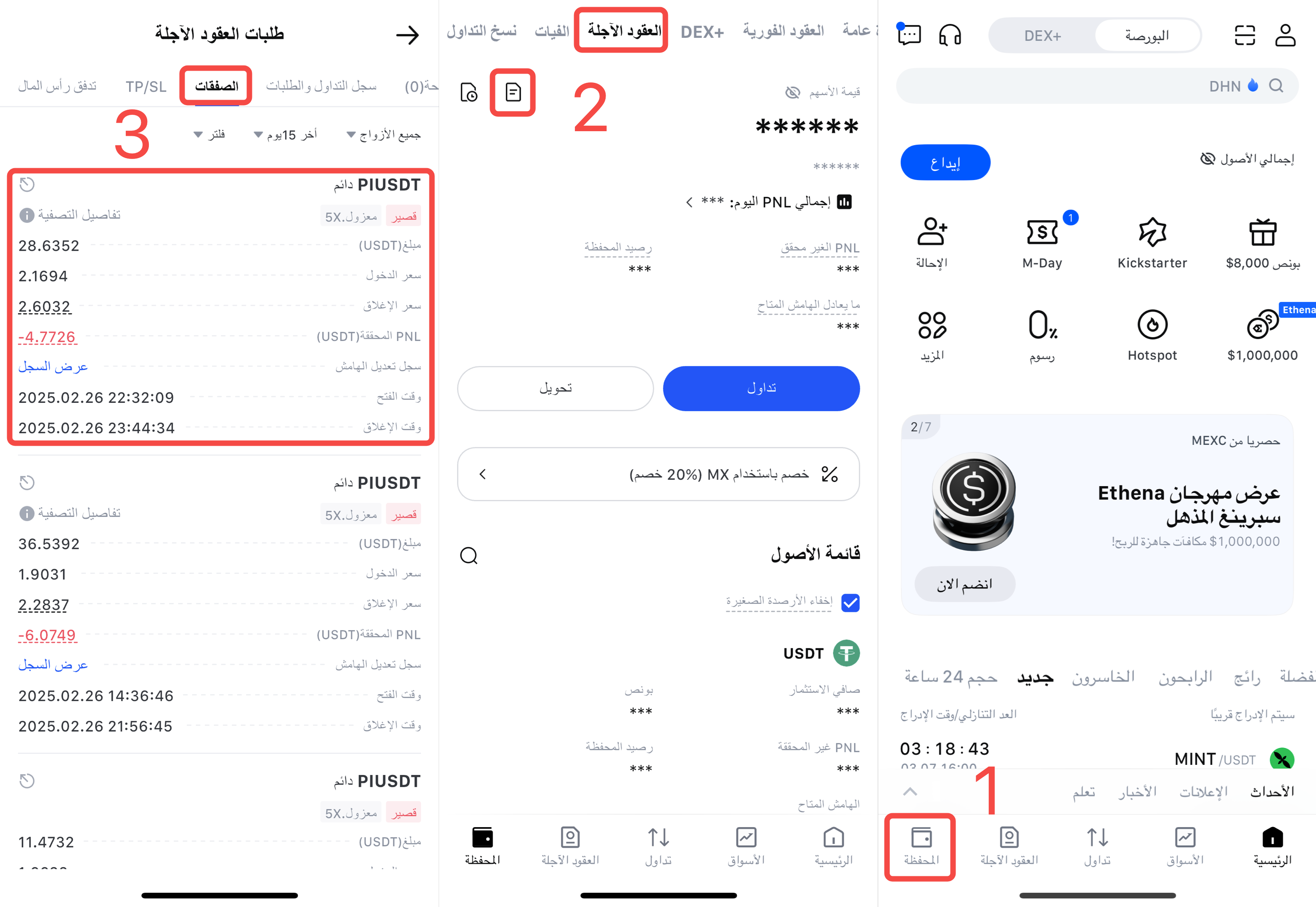 ٣. تحقق من طلبات التصفية في "سجل الصفقات".