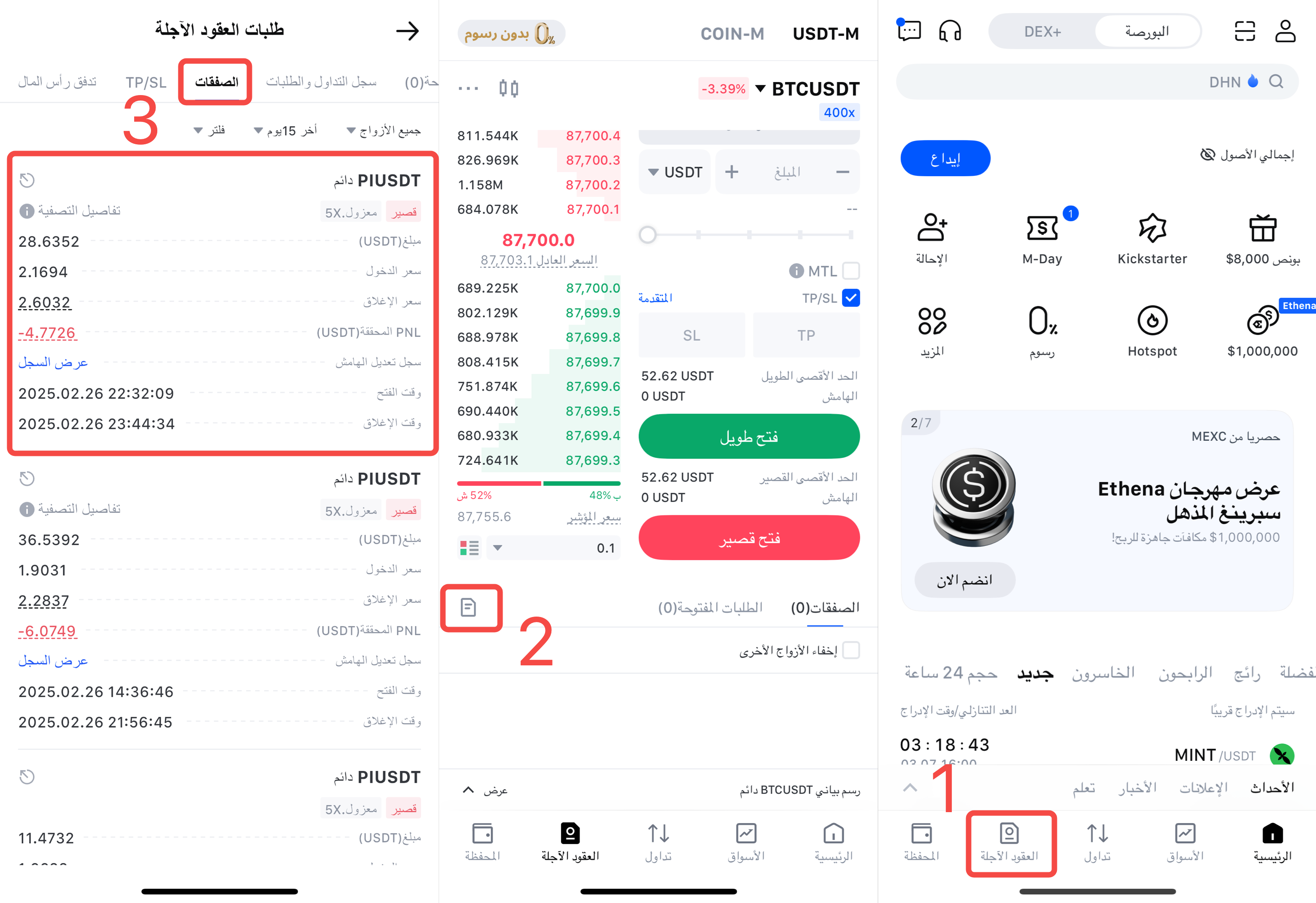 ١. سجّل دخولك إلى تطبيق MEXC وانقر على "العقود الآجلة" في الأسفل للدخول إلى صفحة تداول العقود الآجلة.