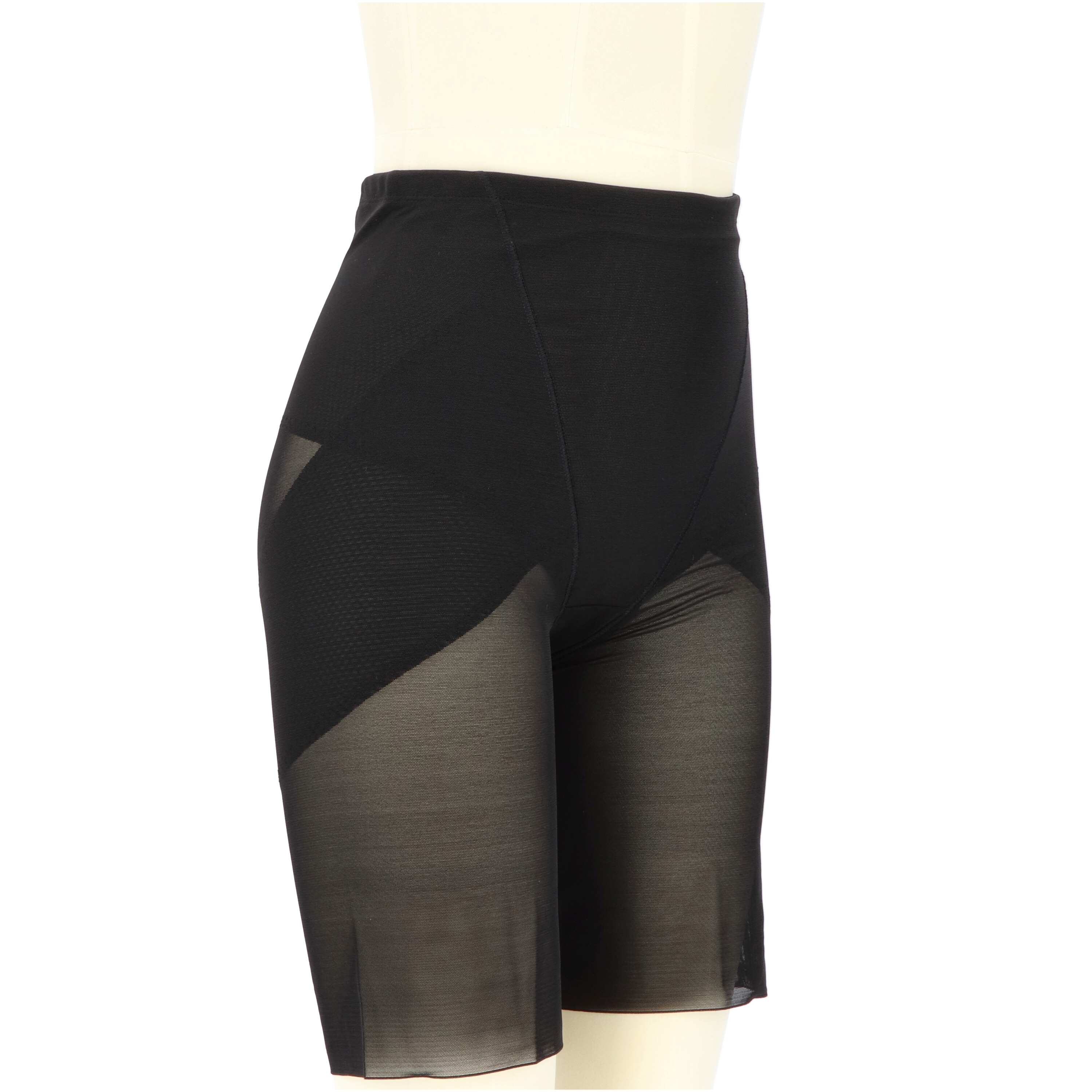 サァイーナの「スリム補整ガードル」は、骨盤のサポートができるよう、骨盤周りには強力パワーネットと特殊生地が使用されています。メッシュ素材で通気性がよいのも美点です。補正力はほどよく、今回検証した商品のなかではまずまずの評価になりました。とくに太もも周りの着圧が強かったので、太もも周りのシルエットが気になる人におすすめです。ウエストや下腹あたりの着圧は平均よりも低く、補正力が強いとはいえないものの、腹部の締め付けを控えるべき産後には向いているといえますよ。履きやすさの検証では「伸縮性が高く、スルッと履ける」とモニターから高評価が集まりました。着心地の検証では、座っても極端にウエストが食い込んでしまうことなく快適との声も多い傾向に。ただし、化繊素材やレースがすれて気になるとの声があったため、敏感肌の人は避けたほうがよいでしょう。