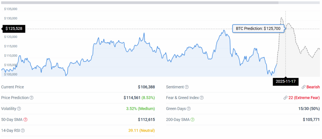 Should Bitcoin reach $125,700 by November 17, 2025, it will mark a 17.91% increase from the current levels. For most, that would signify more than a mere increase of value, it would be a return of trust to the crypto frontier.
