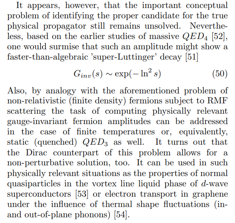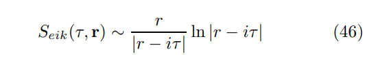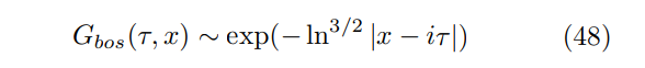 \ Similar to the discussion of the case ξ = 1, it has been argued that the behavior (46) can only develop in some intermediate regime. By contrast, at the longest times an essentially free algebraic behavior, G(τ, r → 0) ≈ G0(τ, r → 0), was found, whereas at large distances the propagator was predicted to experience no more than a logarithmic suppression, G(τ → 0, r) ≈ G0(τ → 0, r)/ ln r [8].