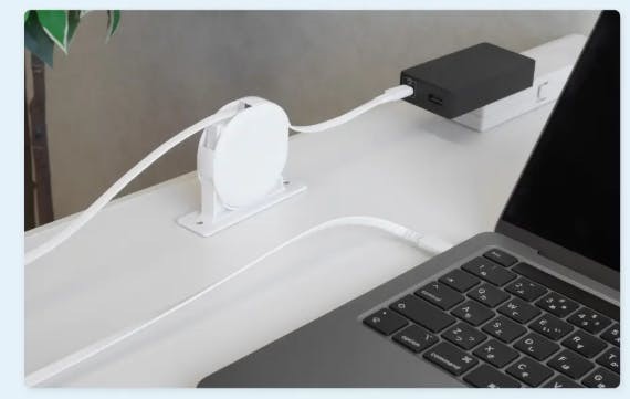 為了解決線材凌亂問題,市面上已有許多捲式充電線,像捲尺一樣可伸出或自動收回,非常方便收納。不過這類捲線用完後,常常也不知道放哪裡。日本 Owltech 推出的一款 附固定座的捲式 USB‑C 線,同時解決了這兩個問題。
