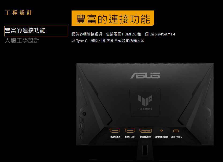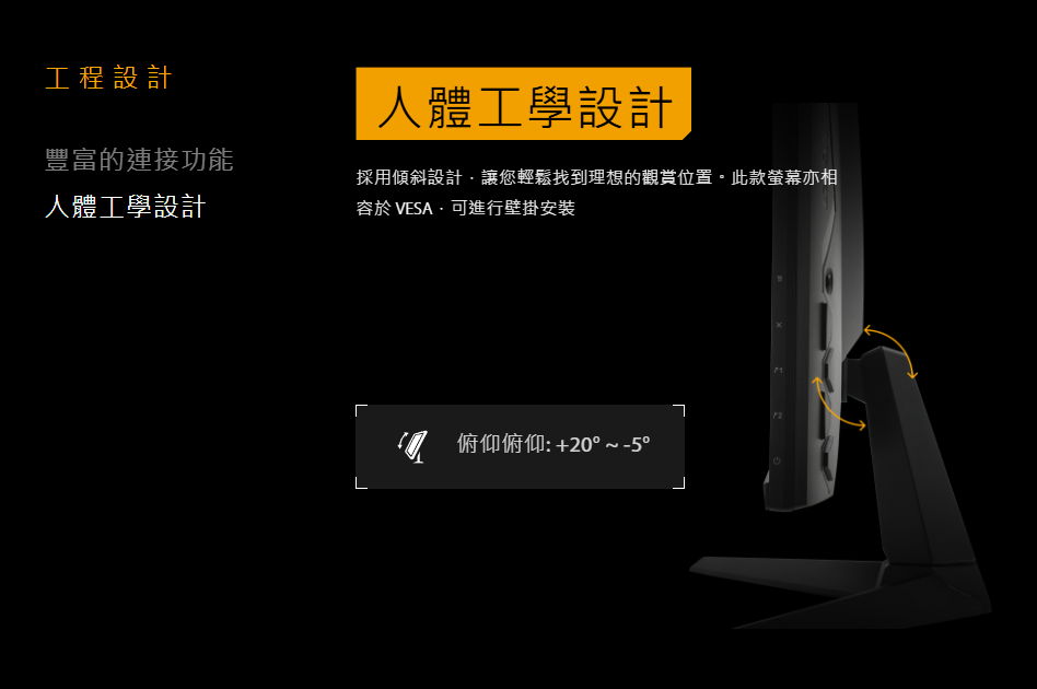 ▲螢幕最大更新率為210Hz,反應時間則是0.3ms。▲支援多種同步與低延遲技術。▲傳輸介面有3個,除了電腦之外還能接遊戲機。▲支架只能調整俯仰角度無法調整高度。